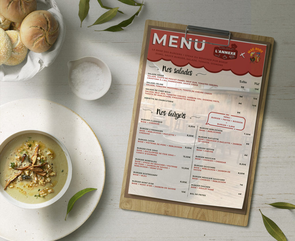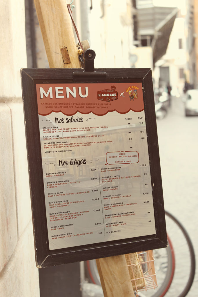 Le projet est celui de Céline qui à repris la gérance de L’Annexe il y quelques mois. Elle souhaitait donc une nouvelle identité visuelle ainsi que de nouveaux menus de restaurant ! Je vous laisse découvrir le rendu final pour cette entreprise savoyarde !
